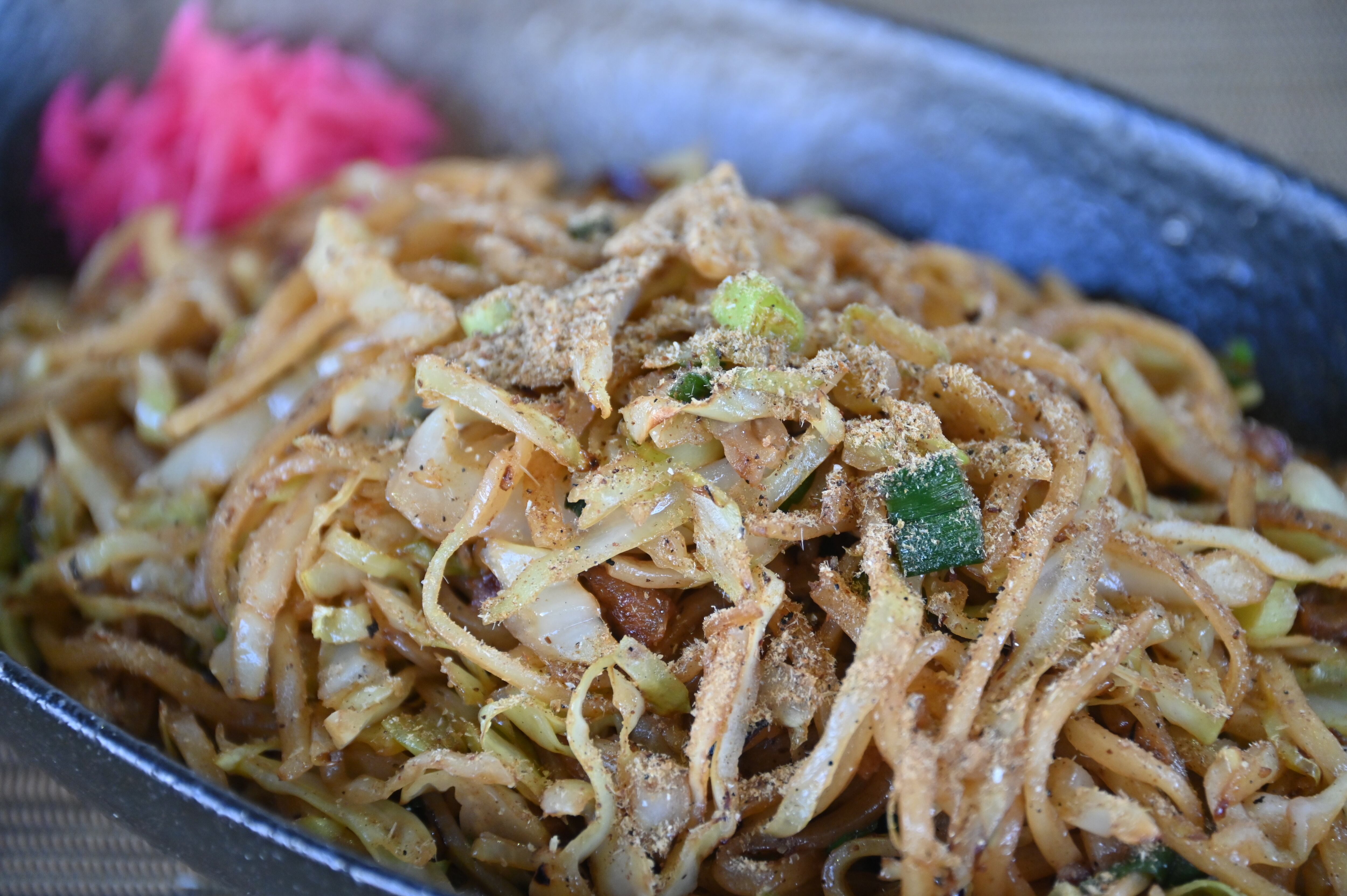 富士宮やきそばアンテナショップの味をご家庭で再現。もちもち蒸し麺と旨味たっぷりの肉かす、鰯の風味あふれる削り粉が特徴の癖になるうまさです。